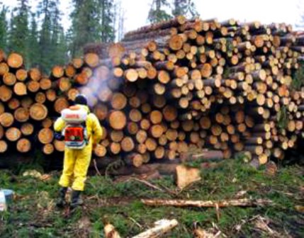 - Фумигация древесины — высокоэффективный метод, потому что погибают не только взрослые особи, но и яйца, личинки.